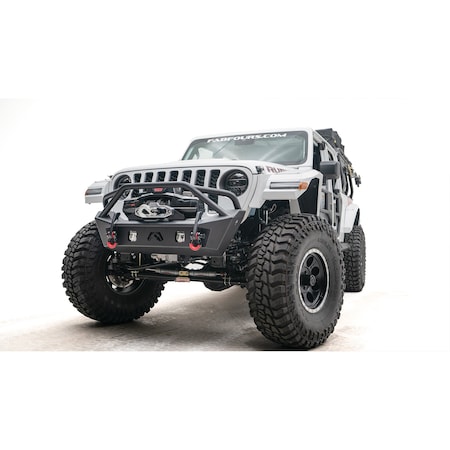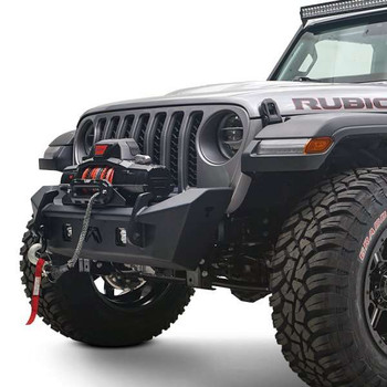 - 2018+ Jeep JL/2020 Jeep JT Gladiator; No-Guard Option; Narrow Stubby Design; Integrated D-Rings; Integrated Tow Hooks; Winch Ready with included winch tray; Integrated fog light housing using 3x3 Pod lights or factory fog lights (Not compatible with OE Steel bumper fog lights); Ease of installation; 3/16in. Steel Construction; 2 Stage Matte Black Powder Coat w/ epoxy primer; Weight 75lbs; Height 22in.; Width 23in.; Length 47in.; 100 percent Made in the USA|Stubby Bumper; w/No Guard; 2 Stage Matte Black Powder Coated.