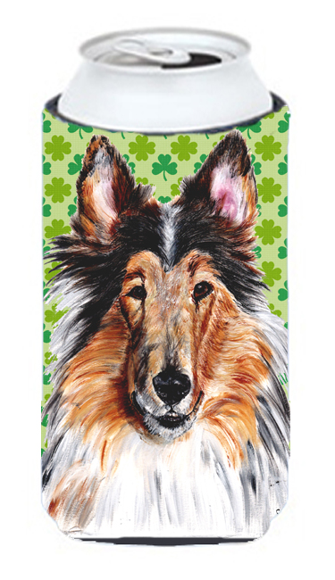 Caroline's Treasures SC9718TBC Collie Lucky Shamrock St. Patrick's Day Tall Boy Hugger Can Cooler Sleeve Hugger Machine Washable Drink Sleeve Hugger Collapsible Insulator Beverage Insulated Holder