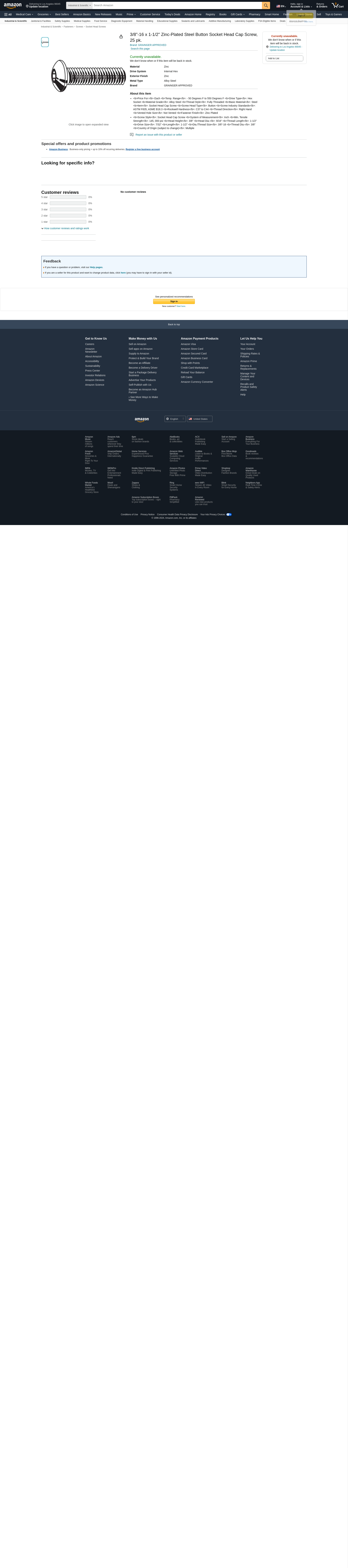 'Socket Head Cap Screw, System of Measurement Inch, Button, Basic Material Steel, Material Grade Alloy Steel, 3/8 In.-16, Length 1-1/2 In., Fastener Finish Zinc Plated, Fastener Thread Type UNC, Drive Type Hex Socket, Drive Size 7/32 In., Thread Style Fully Threaded, Thread Direction Right Hand, Thread Length 1-1/2 In., Head Height 3/8 In., Thread Dia. 3/8 In., Package Quantity 25'