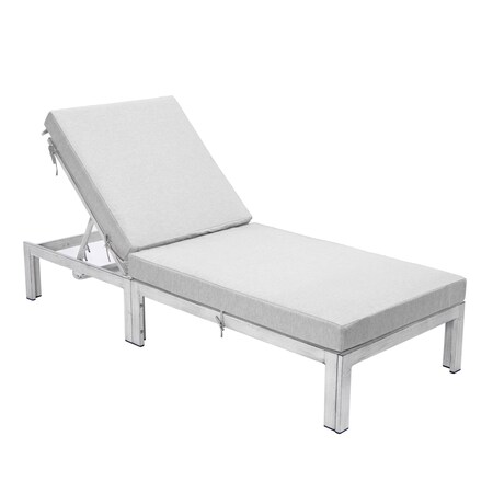 Chelsea Modern Outdoor Weathered Grey Chaise Lounge Chair With Light Grey Cushions