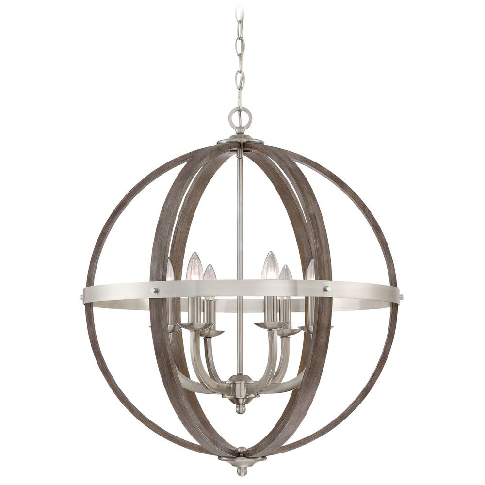 Quoizel Naturals FSN5206BN Fusion Industrial Wrought Iron and Faux Wood Chandelier, 6-Light 360 Total Watts, 29" H x 25" W, Brushed Nickel