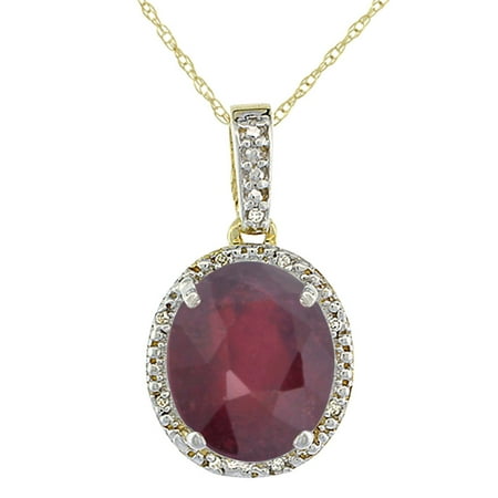 10K Yellow Gold Enhanced Ruby Pendant Oval 12x10 mm & Diamond Accents