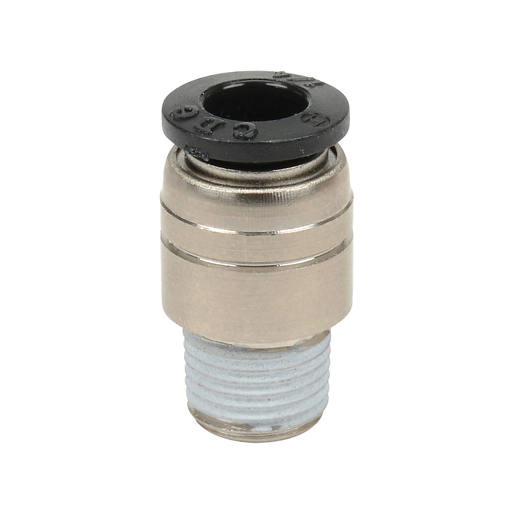 MSR14-18N - NITRA pneumatic push-to-connect fitting, male, round straight, nickel-plated brass body, nickel-plated brass threads, 1/4in tube to 1/8in NPT...