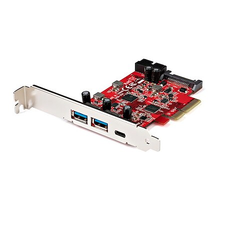This 5-port USB 3.2 Gen 2x1 (10Gbps) combo card makes it easy to add to the performance and connectivity of your computer. The USB 3.2 card offers a USB Type-C™ port (10Gbps), two traditional USB Type-A ports (10Gbps), and a motherboard header (USB 5Gbps). By offering a range of USB port types, you can easily connect a variety of modern and legacy USB devices, both inside and outside your computer. Because the card offers a 10Gbps USB ports, you can save time and avoid the performance bottlenecks that are often associated with other connectivity technologies. USB 3.2 Gen 2x1 (USB 10Gbps) is also known as USB 3.1 Gen 2 (10Gbps). USB 3.2 Gen 1x1 (5Gbps) is also known as USB 3.1 Gen 1 (5Gbps) and USB 3.0 (5Gbps). Work faster and prepare for the future This versatile PCI Express combo card leverages the performance potential of USB 3.2 Gen 2x1 (10Gbps) to help you work faster. The USB ports offer a data throughput of up to 10Gbps, so you can spend less time waiting for file transfers to complete or for access to your external peripherals. Connect different types of USB devices Now you can easily add a variety of types and speeds (generations) of USB ports to your desktop or server, using a single adapter card. The card features: One external USB-C port (10Gbps) Two external USB-A ports (10Gbps) One internal 20-pin IDC motherboard header port that can provide two internal USB-A ports (5Gbps) With a range of port types, the card lets you bridge the gap between devices that use different connectors. You can simultaneously connect and access USB Type-A and USB Type-C devices, while using only a single PCI Express expansion slot. By adding three types of USB ports in one combo card, you can free up space in your PC case, and eliminate the nuisance of having different cards for different USB devices. Ideal for building or upgrading your computer With two internal mo