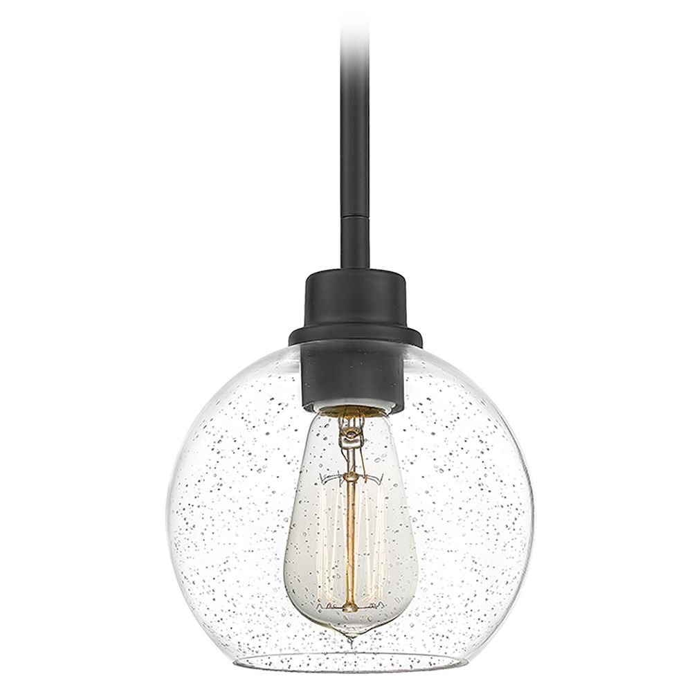 Quoizel PRUS1507MBK Pruitt Blueprint Glass Mini Pendant Ceiling Light, 1-Light 100 Watt, Matte Black