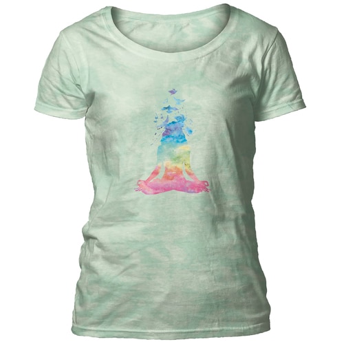 The Mountain 27916002811 Green Namaste Watercolor Ladies Scoop Neck T-Shirt - Medium