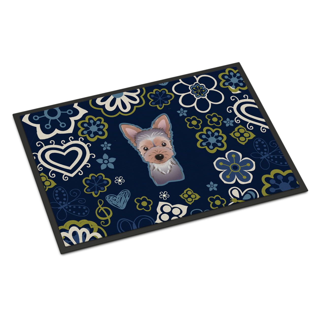 Caroline's Treasures BB5083MAT Blue Flowers Yorkie Puppy Door Mat, Indoor Rug or Outdoor Welcome Mat 18x27 Doormat, 27" L x 18" W, Multicolor