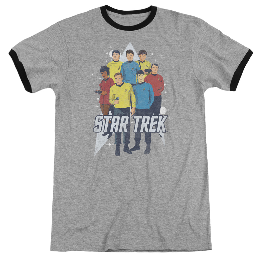 Trevco CBS1380-AR-2 Star Trek & Here Here Adult Ringer Cotton T-Shirt, Heather & Black - Medium