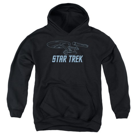 Trevco Star Trek-Enterprise Outline - Youth Pull-Over Hoodie - Black, Extra Large