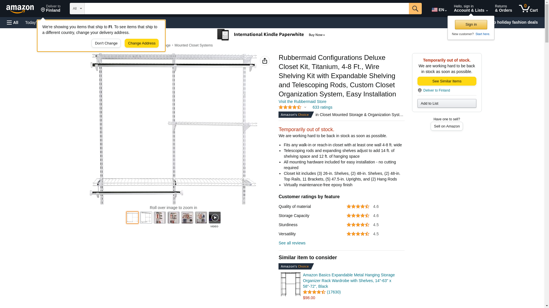 | Feature | Fits any walk-in or reach-in closet with at least one wall 4-8 ft. wide |