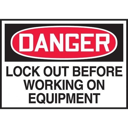Accuform LLKT295VSP Lockout Safety Label, Legend "Danger Lock Out Before Working ON Equipment", 3.5" Length x 5" Width x 0.004" Thickness, Adhesive Vinyl, Red/Black on White (Pack of 5)
