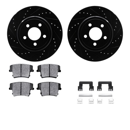 8512-39011, Rotors-Drilled and Slotted-Black w/ 5000 Advanced Brake Pads incl. Hardware, Zinc Coated