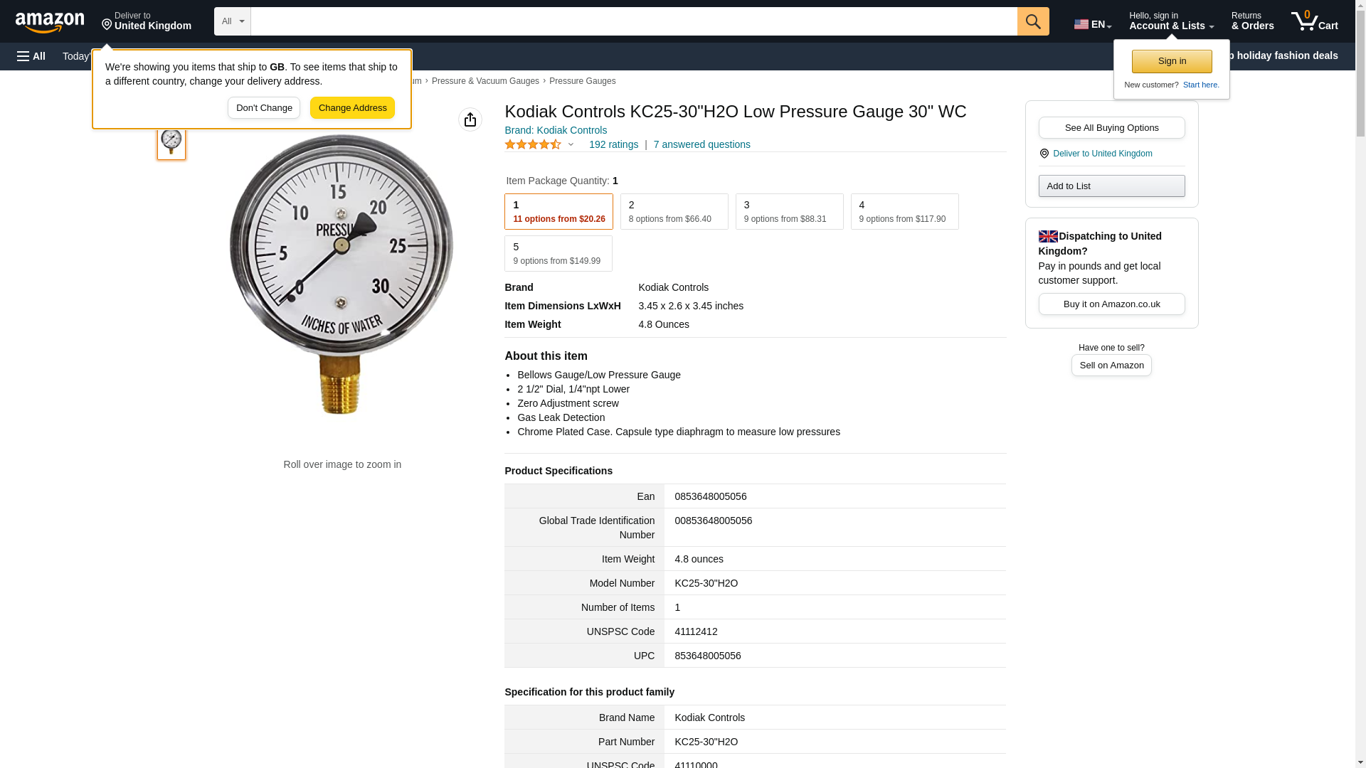 Kodiak Controls KC25-30"H2O Low Pressure Gauge 30" WC (5)