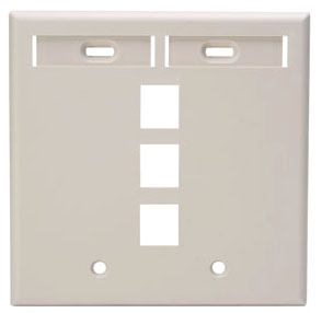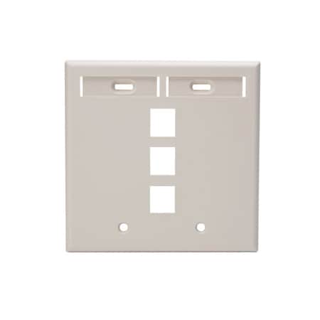 Leviton 42080-3TP 3-Port Dual Gang QuickPort Wallplate with ID Windows, Light Almond