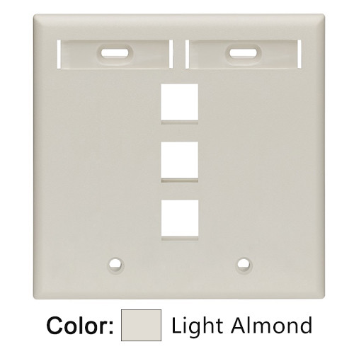 Leviton 42080-3TP QuickPort Wallplate 2 Gang 3 Port Standard Size Plastic - Light Almond (Pkg of 25)