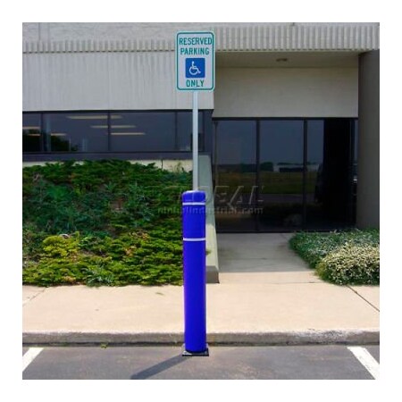 52"H FlexBollard™ with 8'H Sign Post - Concrete Installation - Blue Cover/White Tapes