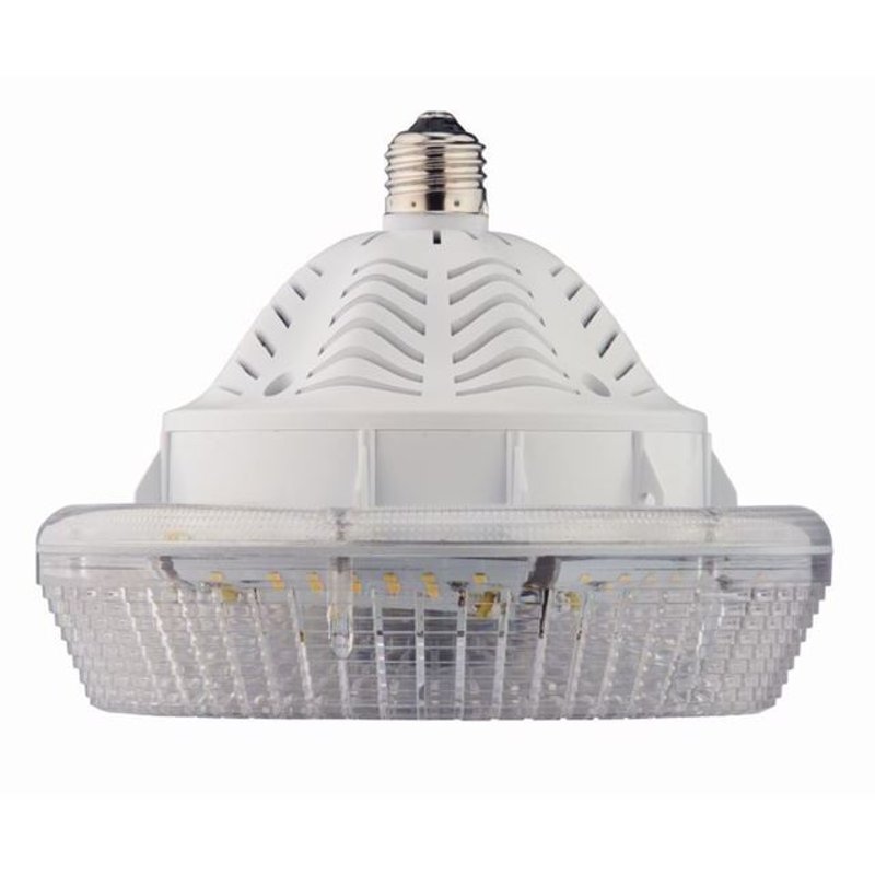 'LED Lamp, Bulb Shape High/Low Bay, Dimmable No, Polycarbonate Bulb Housing, Bulb Base Type Medium Screw (E26), 175/250 Watts, Wattage Equivalency 175W HPS/175W MH, Bulb Color Temp. 4000K, LED, Light Appearance 4000 to 4999K, Cool White, Average Bulb Life 50,000 hr., Color Rendering Index 85.6, Bulb Type High Output, Bulb Beam Angle 360 Degrees , Lumens 5773, Max. Overall Bulb Length 5-29/32 In., Light Bulb Dia. 7-7/8 In.'