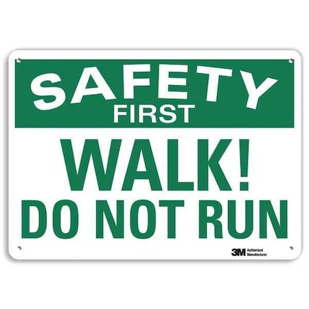 Safety Sign, Horizontal Rectangle, Number of Printed Sides 1, English, Sign Format Traditional OSHA, Sign Legend Walk! Do Not Run, Sign Legend Background Color White, Sign Legend Style Text