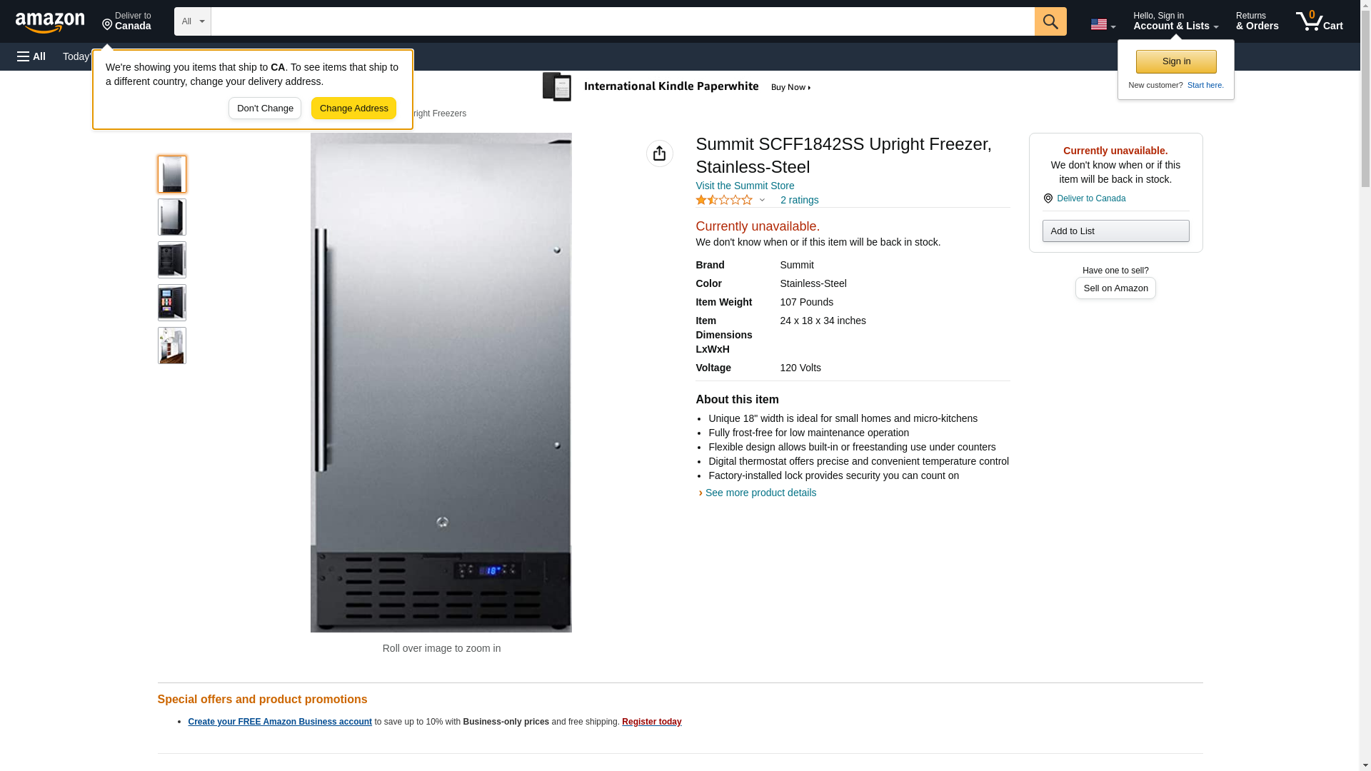 Summit SCFF1842SS Upright Freezer, Stainless-Steel