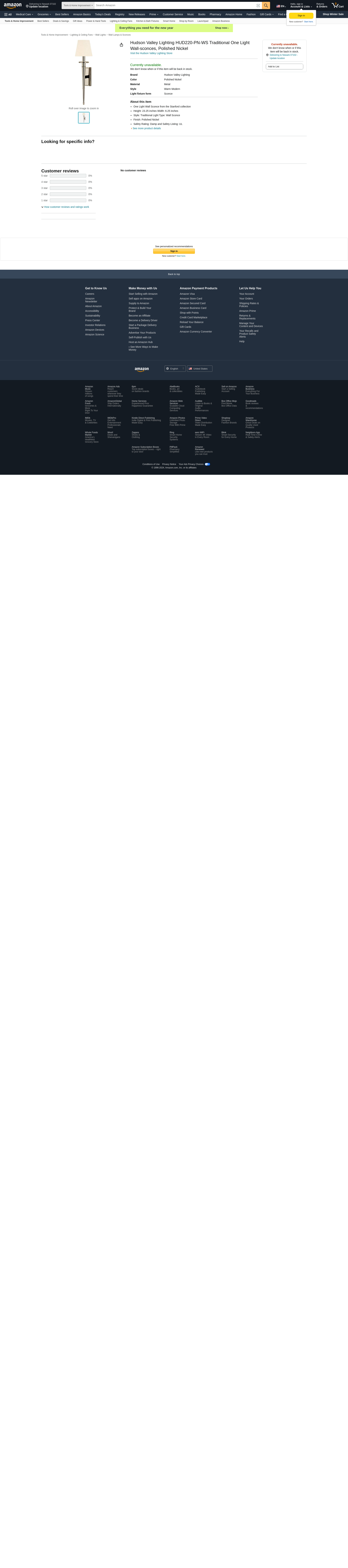 Hudson Valley Lighting 220-PN-WS Stanford Polished Nickel Wall Sconce