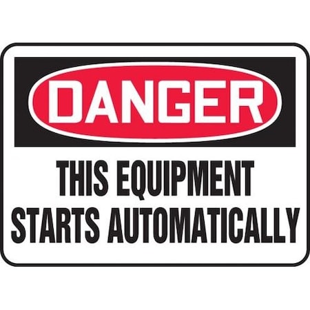 Accuform MEQM176XT Legend "Danger This Equipment Starts Automatically" Sign, 10" Height, 14" Wide, 10" Length, 0.060" Thickness, Dura-Plastic, Red/Black on White
