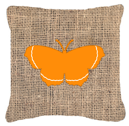 Carolines Treasures BB1037-BL-OR-PW1414 14 x 14 in. Butterfly Burlap and Orange Decorative Fabric Pillow