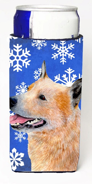 Caroline's Treasures LH9272MUK Australian Cattle Dog Winter Snowflakes Holiday Ultra Hugger for slim cans Can Cooler Sleeve Hugger Machine Washable Drink Sleeve Hugger Collapsible Insulator Beverage I