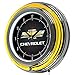 This retro neon clock comes with two neon rings ? a bright white neon on the inside to light up the exclusive graphic and a vibrant neon ring on the outside. The high gloss chrome molded clock case adds to the brilliant shine of the neon. Make a spectacular addition to your kitchen, den or game room with this amazing clock.