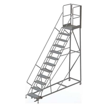 Tri-Arc RWEC112246-XR 12-Step Gateway Rear-Exit Gate Forward Descent Incline Ladder with 27" Deep Top Platform, Perforated Tread with Handrails, 24" Wide Steps, Gray