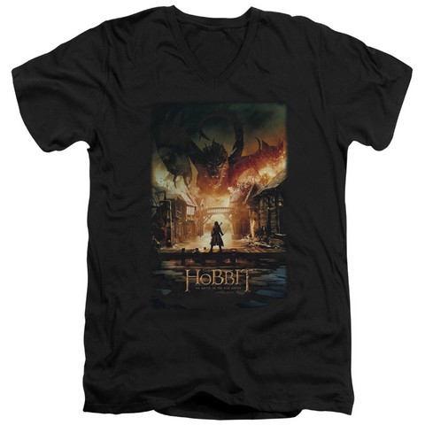 Trevco Hobbit-Smaug Poster Short Sleeve Adult V-Neck 30-1 Tee, Black - Small