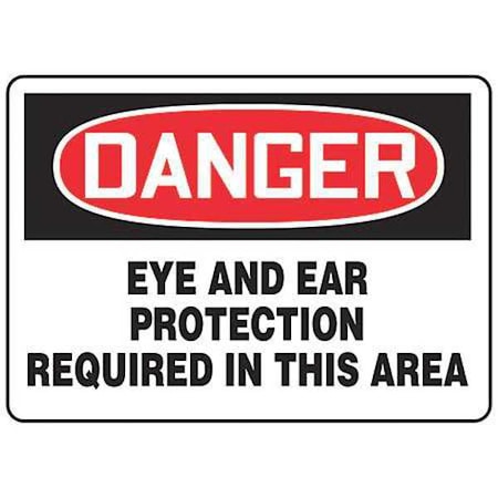 Accuform MPPE035VP Plastic Safety Sign, Danger Eye and Ear Protection Required in This Area", 7" Length x 10" Width x 0.055" Thickness, Red/Black on White