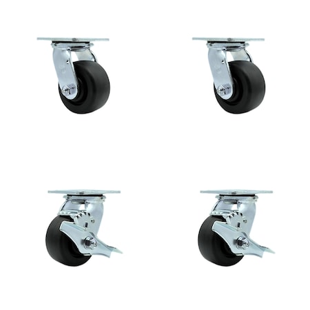 Polyolefin Swivel Top Plate Caster Set of 4 w/4" x 2" Black Wheels - Includes 2 Swivel with Brakes & 2 Swivel - 2000 lbs Total Capacity - Service Caster Brand