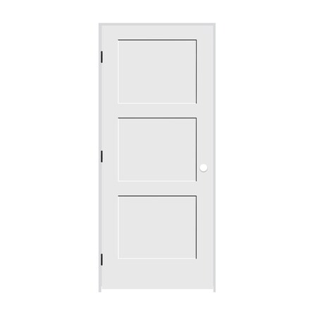 24" x 84" x 1-3/8" Primed 3-Panel Equal Panel Interior Shaker 7-1/4" RH Prehung Door w/Black Hinges