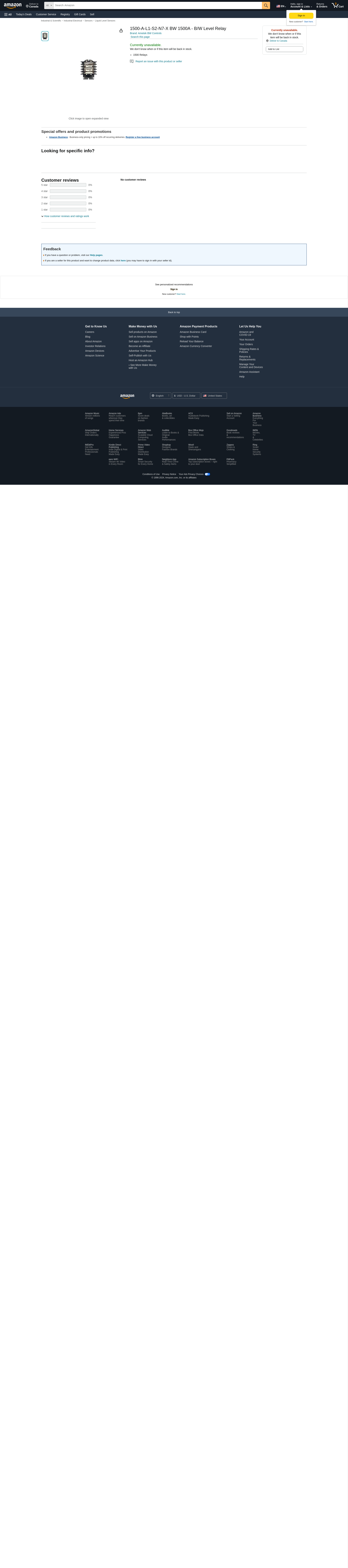 1500-A-L1-S2-N7-X BW 1500A - B/W Level Relay