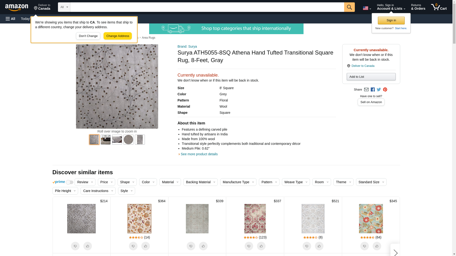 Surya ATH5055-8SQ Athena Hand Tufted Transitional Square Rug, 8-Feet, Gray