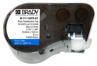 Brady M-111-145FR-GY Polyethylene B-145FR Black on Grey Label Maker Cartridge, 1-13/64" Width x 3/4" Height, For BMP51/BMP53 Printers