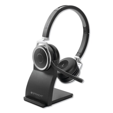 Spracht ZumBT-410 Prestige Bluetooth Headset with Noise-Canceling Microphone | Wireless Headset with Charging Base & USB Dongle for Computer | PC Headset for Working from Home/Office/Teams/Zoom