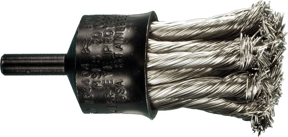 PFERD universal line PS-forte contains a selection of the most popular brush sizes and styles used by contractors and tradesmen in single-use, shift-work environments. The design of this knot wire end brush is tailored for power tools that are frequently found on contractor jobsites such as drills, angle grinders, die grinders and bench grinders. Has round shank fastening, 20000 maximum RPM and stainless steel wire bristles. Available in 1-inches diameter, 0.014-inches wire size and 1/4-inches shank diameter. Uses in industries area: automotive, transportation, mining, electronics, aerospace, welding, nuclear, textiles, food services, construction, petrochemical, farming, medical, shipbuilding, fabricating, defense, foundries and plastics.