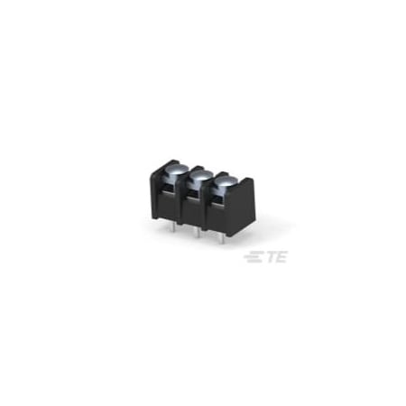EU RoHS: Compliant with Exemption ECCN (US): EAR99 Part Status: Active HTS: 8536.90.40.00 Type: Barrier Strip Number of Contacts: 3 Terminal Pitch (mm): 8.26 Number of Rows: 1 Number of Circuits: 3 Termination Method: Solder Body Orientation: Straight Maximum Current Rating (A): 20/Contact Maximum Voltage Rating: 150V Maximum Operating Temperature (°C): 105 Packaging: Package Product Length (mm): 26.42 Product Depth (mm): 12.7 Product Height (mm): 13.46 Housing Color: Black Mounting: Through Hole