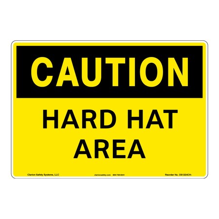 <p><strong>Word Message: </strong><br />HARD HAT AREA</p><p><strong>Description: </strong><br />Clarion Safety Systems brings you Caution Hard Hat Area safety signs (OS1224CH-) which are produced on premium plastic or aluminum material and are designed to meet your OSHA safety sign needs.<p><strong>Material Information:</strong></p> <ul> <li><strong>Material</strong>: (BJ) Indoor/Outdoor Plastic</li> <li><strong>Base Materials</strong>: .060" Rigid White Plastic</li> <li><strong>Overlaminate</strong>: none</li> <li><strong>Mounting Option</strong>: Mounting holes</li> <li><strong>Application</strong>: Indoor/Outdoor</li> <li><strong>MaxTemp</strong> (F): 140</li> <li><strong>MinTemp</strong> (F): 32</li> <li><strong>Chemical Resistance</strong>: Good</li> <li><strong>UV Resistance</strong>: Good</li> <li><strong>Outdoor durability</strong>: Good</li> <li><strong>Storage Stability</strong>: Stable. Optimum storage conditions: 72 F @ 50% relative humidity</li> <li><strong>Expected Life Indoor</strong>: Long term</li> <li><strong>Expected Life Outdoor</strong>: 3-5 year (expected outdoor life may vary due to climatic conditions)</li> <li><strong>RoHS</strong>: Yes</li> <li><strong>CRoHS</strong>: Yes</li> <li><strong>REACH</strong>: Yes</li> </ul>