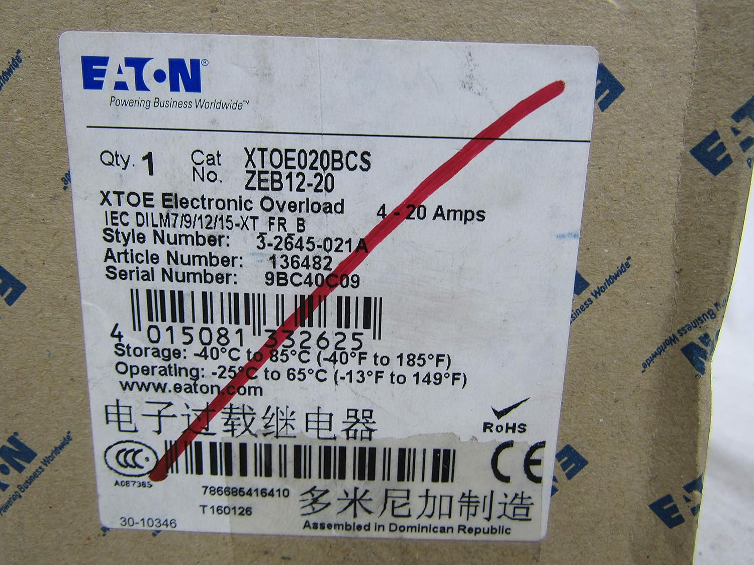 - Eaton XTOE020BCS Ovrload Relay,4 to 20A,Class 10/20/30,3P