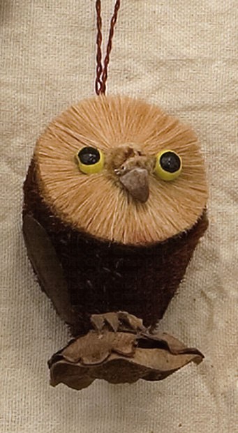 Owl Ornament BrushArt animals are hand made from the most super-abundant and self-regenerating of natural materials: leaves, leaf fibers, seeds, and seed pods, held together with wire and glue. Most important to a BrushArt animal is the buri sugar palm. It is the long, thick leaf stems that provide the fiber from which the body of a BrushArt animal is made. BrushArt animals make delightful and imaginative gifts.