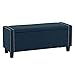 This storage ottoman is a versatile addition to any home. It offers multiple storage space options such as linens in bedrooms or board games and blankets in living rooms, the choices are endless. Wrapped in a soft navy blue polyester fabric that's durability stands up to stains and wear and tear. Supported by dark brown rubberwood legs and a nailhead trim it is as stylish as it is practical. The ottoman's classic design makes it easy to assemble and disassemble for storage or to move to the room of your choice.<br/><br/>Features :<br/><br/>- Upholstered in a navy soft polyester fabric<br/>- Dark brown stained rubberwood legs<br/>- Foam padded seat for comfort<br/>- Opens for additional storage<br/>- Versatile design perfect for an entryway or the end of your bed<br/>- Multifunctional for additional seating or storage<br/>- Nailhead trim detail.<br/><br/>Specifications :<br/><br/>- Frame Material : Engineered Wood<br/>- Upholstery Material : Polyester<br/>- Weight Capacity : 245 pounds<br/>- Warranty : 180-Day Limited Warranty.