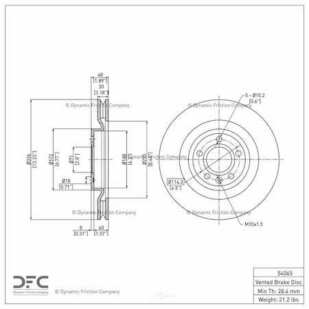 Dynamic Friction Company Front Disc Brake Rotor 600-54065 (1) For 2011-2014 Ford Mustang