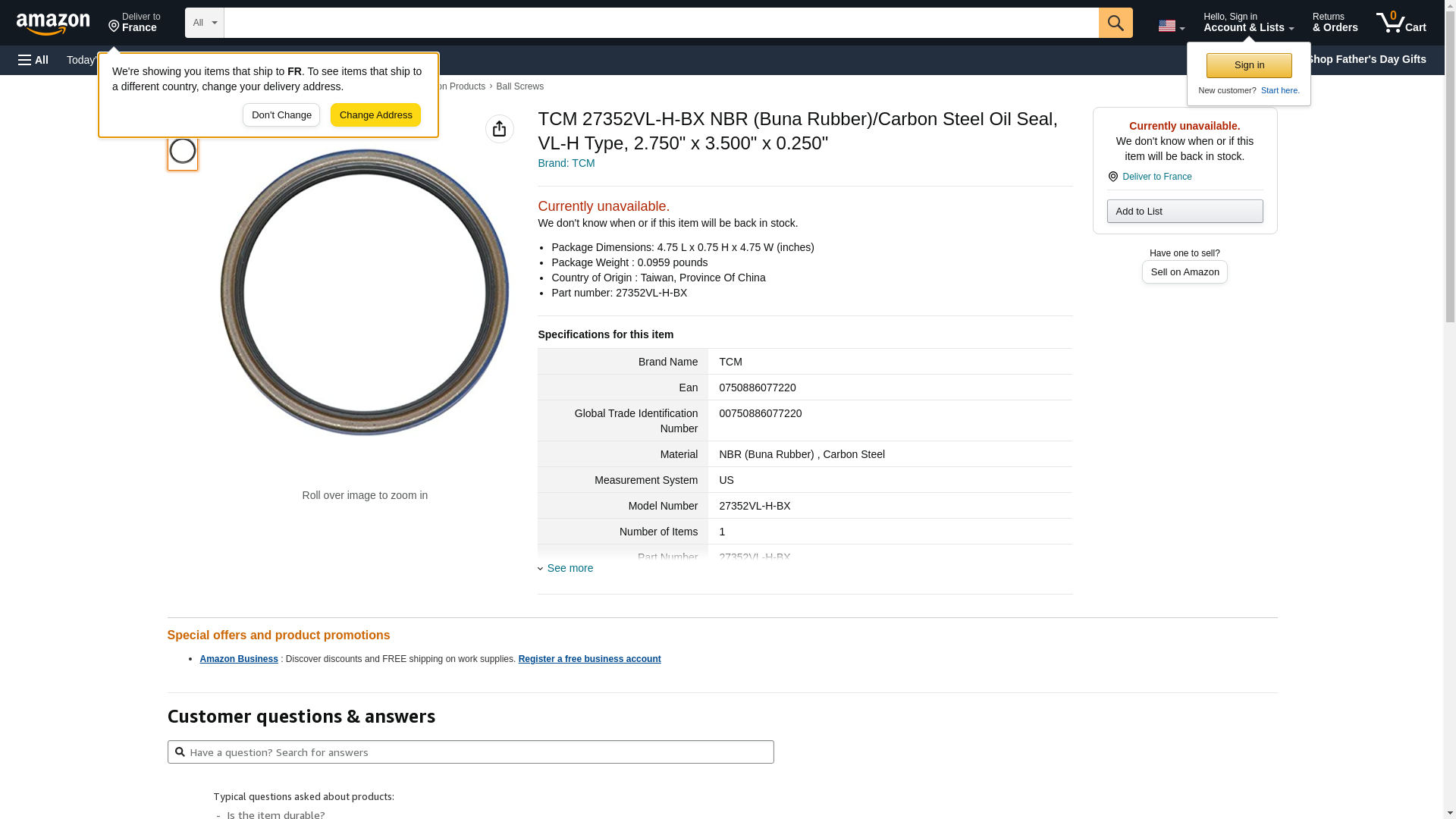 TCM 27352VL-H-BX NBR (Buna Rubber)/Carbon Steel Oil Seal, VL-H Type, 2.750" x 3.500" x 0.250"