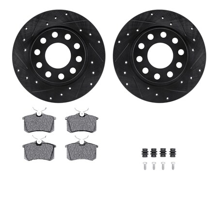 8512-73056, Rotors-Drilled and Slotted-Black w/ 5000 Advanced Brake Pads incl. Hardware, Zinc Coated