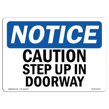 OSHA Notice Sign - Caution Step Up in Doorway | Rigid Plastic Sign | Protect Your Business, Construction Site, Warehouse & Shop Area | Made in The USA