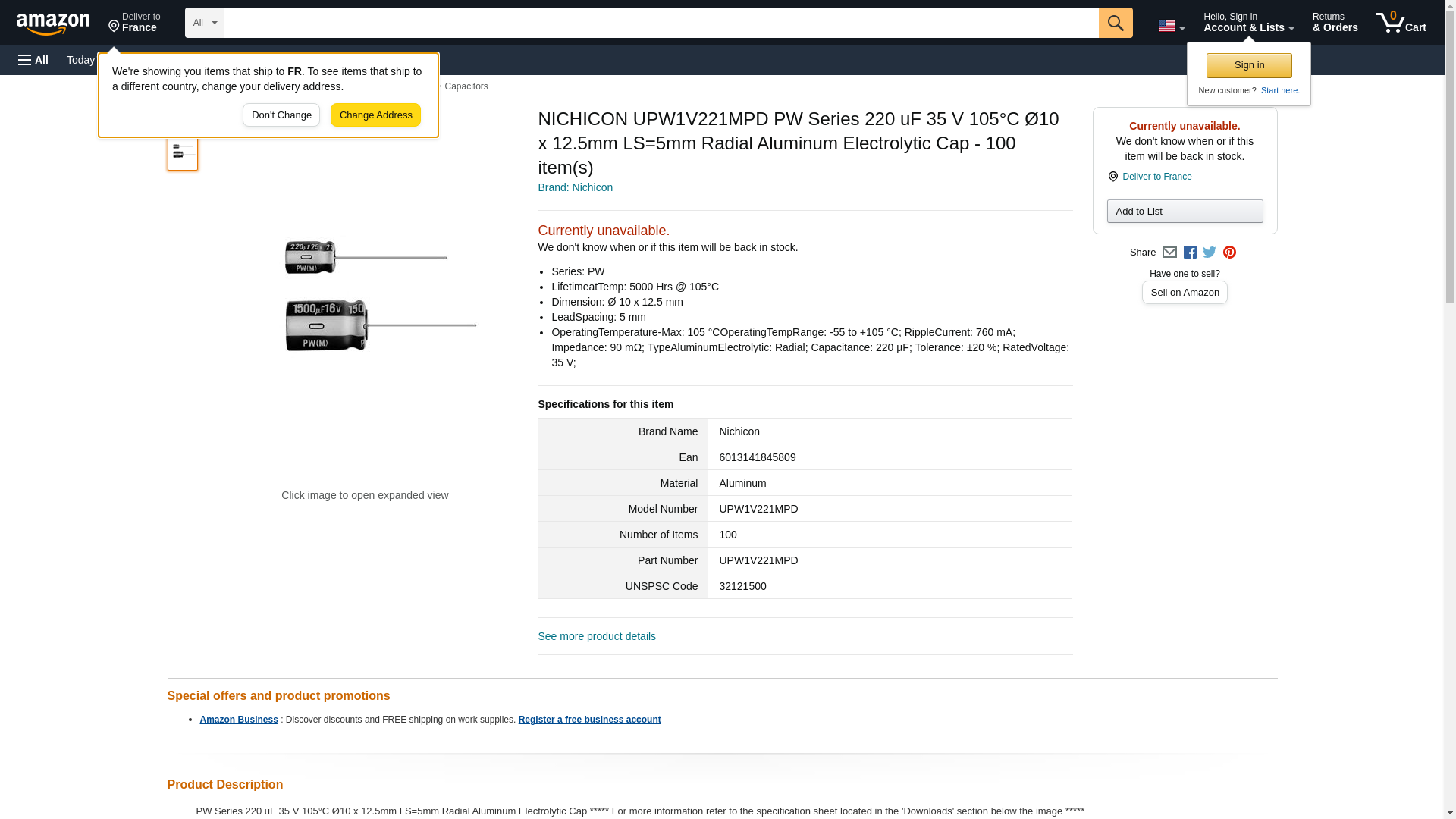 | UPW1V221MPD | 25 | 25 | 25 @ $0.21, 100 @ $0.16, 200 @ $0.14, 800 @ $0.13 | ||