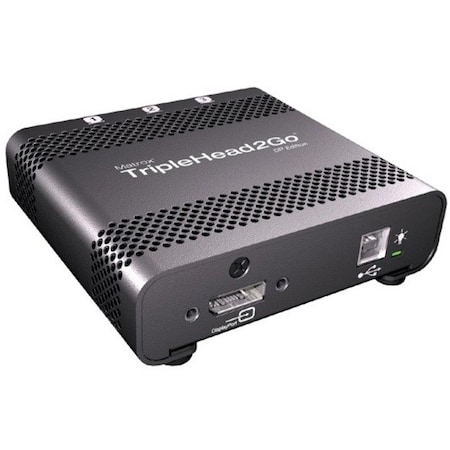 Matrox <b>T2G-DP-MIF</b> TripleHead2Go DP Edition is an external multi-display adapter that adds up to three monitors to your notebook or desktop computer. It connects to the video output of your system and uses its existing GPU to provide high-quality, uncompressed graphics and video across all monitors. Ideal for professionals requiring more desktop space for maximum productivity increases and gamers wanting a totally immersive experience. This small box lets you run different applications on each display or view one application across multiple monitors. A multi monitor set-up lets you organize your workspace more efficiently, multi-task more comfortably and make fewer errors.</p>