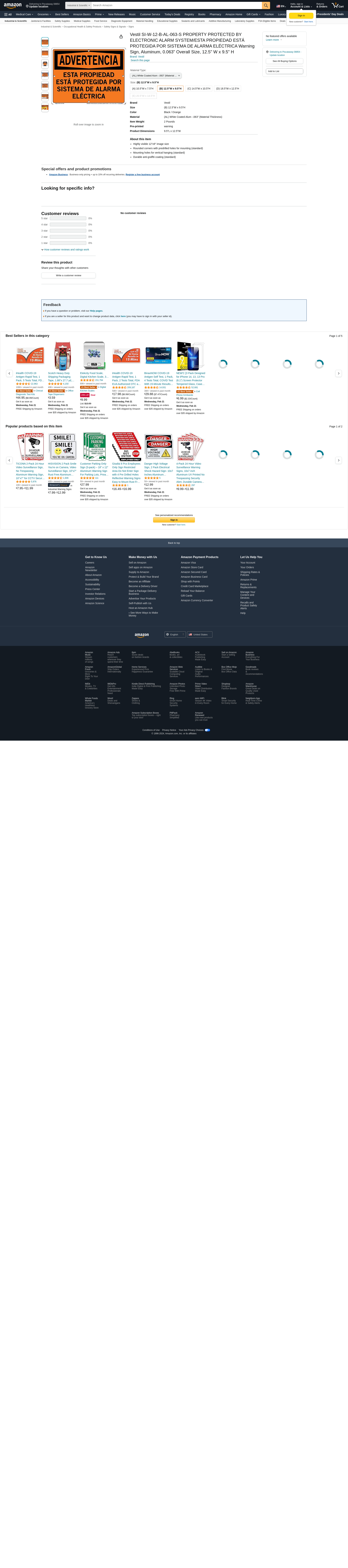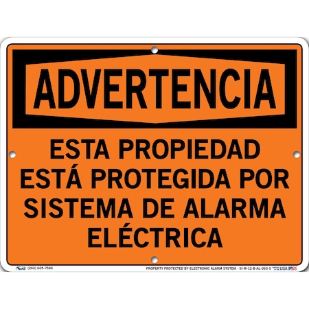 Vestil SI-W-12-B-AL-063-S PROPERTY PROTECTED BY ELECTRONIC ALARM SYSTEM/ESTA PROPIEDAD ESTÁ PROTEGIDA POR SISTEMA DE ALARMA ELÉCTRICA Warning Sign, Aluminum, 0.063" Overall Size, 12.5" W x 9.5" H